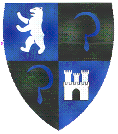 In Blau und Schwarz geviertelter Schild; oben rechts ein silberner Bär auf Blau, oben links und unten rechts eine blaue Sichel auf Schwarz, unten links eine silberne Burg auf blauem Grund.