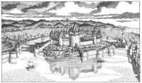 Die Stadt wurde in der Mündung des Pandlaril in den Neunaugensee auf vier Inseln erbaut, die auch die vier