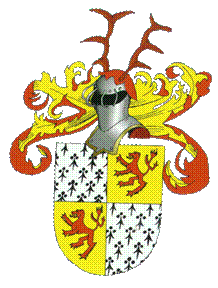 Geviertelter Schild. Oben rechts und unten links Hermelin, oben links und unten rechts eine springende rote Löwin auf güldenem Grund. Darüber ein mit Hirschgeweih gezierter Bügelhelm.