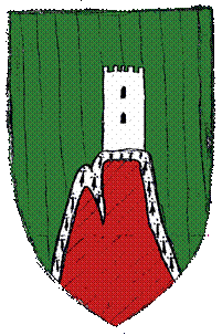 In Blau und Schwarz geviertelter Schild; oben rechts ein silberner Bär auf Blau, oben links und unten rechts eine blaue Sichel auf Schwarz, unten links eine silberne Burg auf blauem Grund.